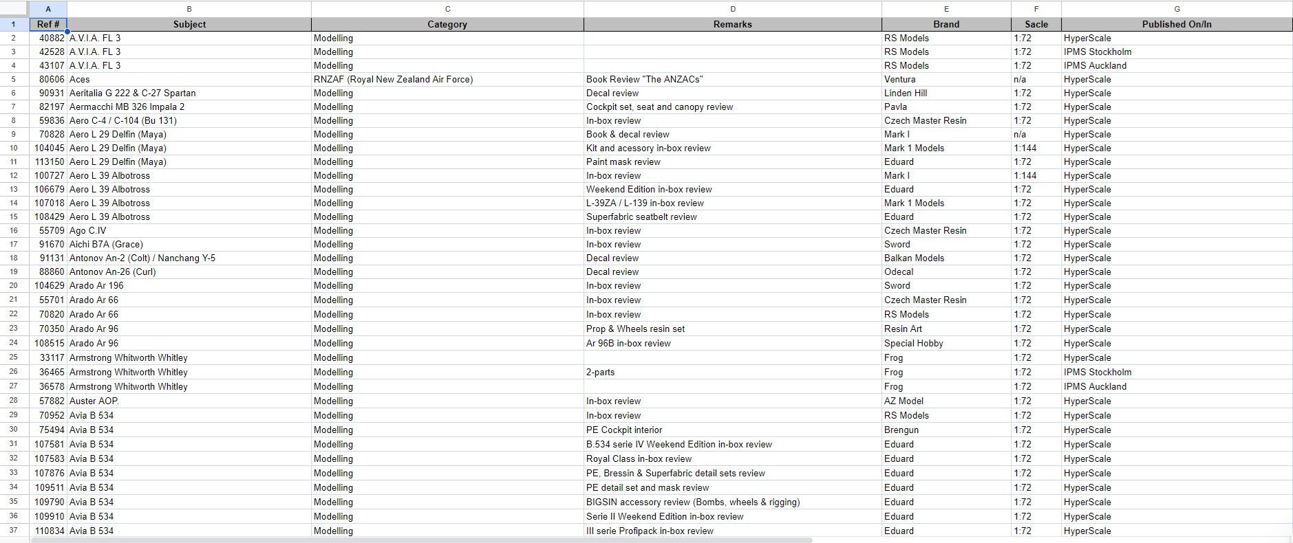 Over 950 mainly in-box and build reviews of kits, decals and accessories written by Mark, are available upon request. A list of these is linked provided in the spreadsheet here. The articles will be made directly downloadable from this website in the future, but for now, please use the Article Request below.